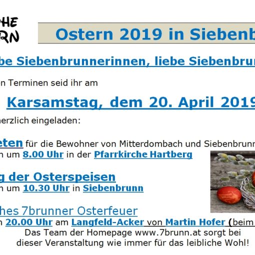 (Abzugeben am Pfingstsonntag von 14 bis 17 Uhr bei Familie Prem, Siebenbrunn 35)
