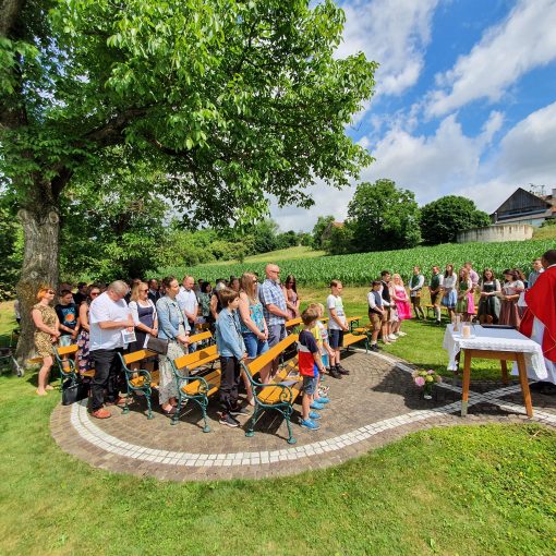 Nach der standesamtlichen Trauung am Vormittag gab es am Nachmittag eine sehr persönliche und feierliche Zeremonie auf dem Siebenbrunner Dorfplatz, zu der die Hochzeitsgäste zu Fuß spaziert sind.
