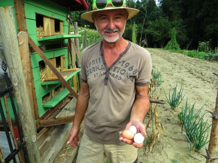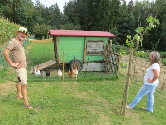 Johann Leitgeb und Karin Eder haben den Grund um das „Heschl-Haus“ gekauft und mit viel Fleiß und Liebe einen schönen Garten daraus gestaltet. Die wackelige Gerätehütte haben sie stabilisiert und gesichert, sie ist der bemerkenswerte Mittelpunkt der weitläufigen Grünfläche. Aus dem alten Viehtransporter wurde ein kleiner aber feiner Hühnerstall, die Hühner haben Auslauf und danken es mit braunen, weißen und grünen Eiern.