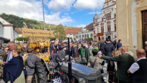Zahlreiche Gäste besuchten zuerst die Messe sowie die festlich geschmückten Erntewägen der einzelnen Dörfer, bevor sie anschließend beim Winzerfest am Hauptplatz den Nachmittag gemütlich ausklingen ließen.