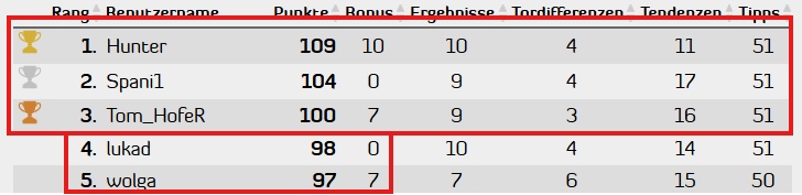 Die fünf haben es aber perfekt geschafft und damit unser heuriges Tippspiel für sich entschieden:
