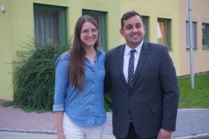 Nach der kurz gehaltenen öffentlichen Gemeinderatsitzung begrüßte der neue Bürgermeister noch Antonia Herunter, die als Obfrau der jungen ÖVP Steiermark ebenfalls die Veranstaltung besuchte.